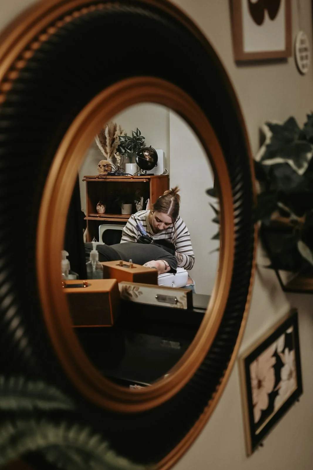 i have a bachelors degree in human development. After working in a school setting for about 7 years (while juggling an apprenticeship/tattooing for 4 years of that as well) i decided it was time to focus solely on my art. I opened saturn tattoo in september of 2021 and its been nothing but up from there!